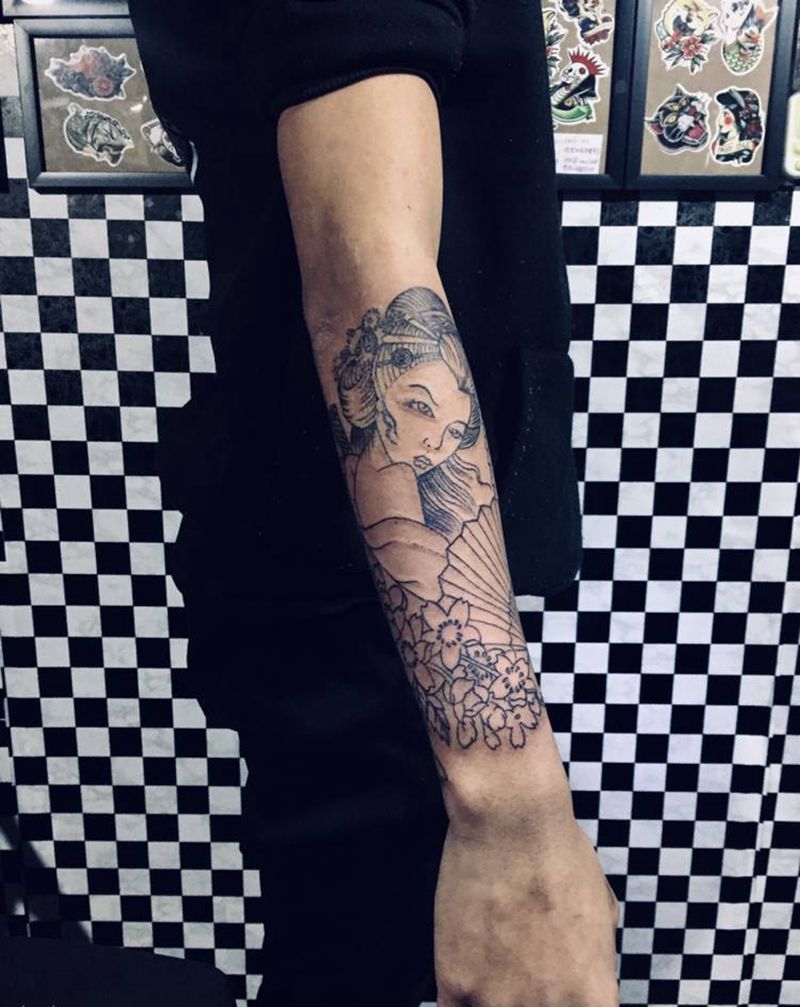 艺妓线条纹身图片_手臂纹身图案