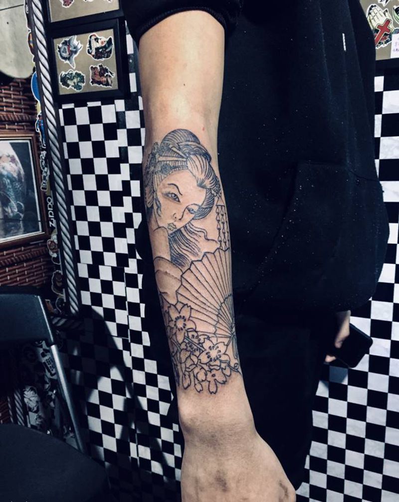 艺妓线条纹身图片_手臂纹身图案