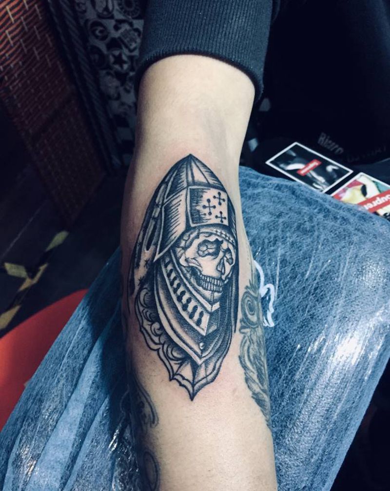 当前位置: 首页 >广东省佛山市纹身店-西樵鲤狮虎刺青纹身图案>骷髅纹身图片_手臂纹身图案