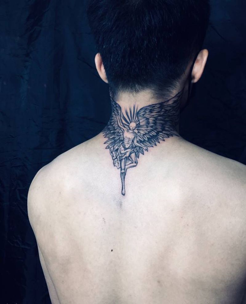 当前位置: 首页 >广东省佛山市纹身店-西樵鲤狮虎刺青纹身图案>权志龙天使纹身图片_颈部纹身图案