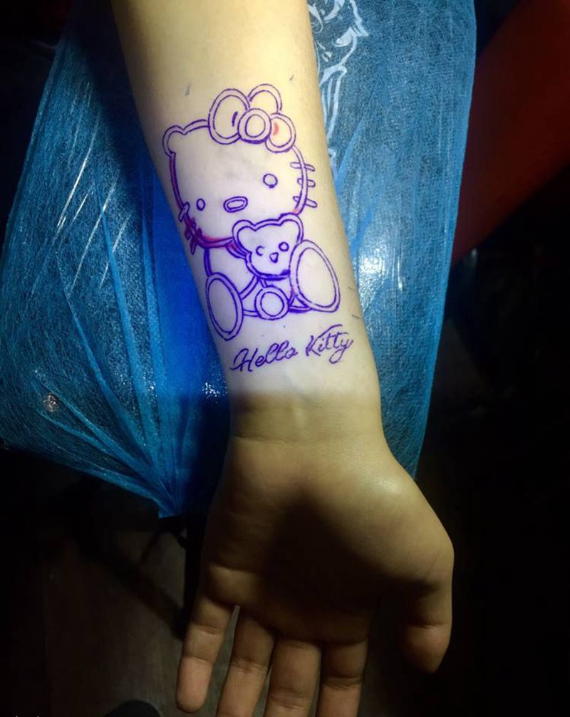 当前位置: 首页 >广东省佛山市纹身店-西樵鲤狮虎刺青纹身图案>HelloKitty纹身图片_手臂纹身图案