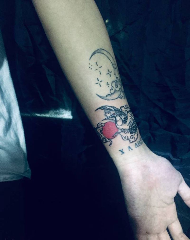 当前位置: 首页 >广东省佛山市纹身店-西樵鲤狮虎刺青纹身图案>鹤纹身图片_手臂纹身图案