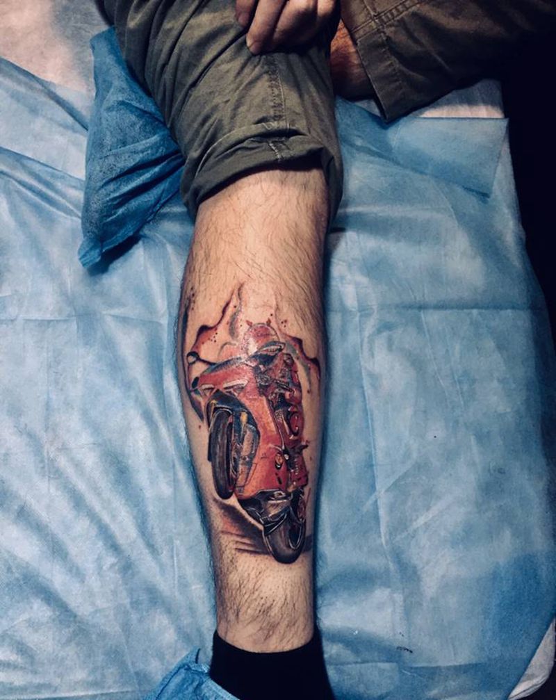 当前位置: 首页 >广东省佛山市纹身店-西樵鲤狮虎刺青纹身图案>摩托车纹身图片_腿部纹身图案
