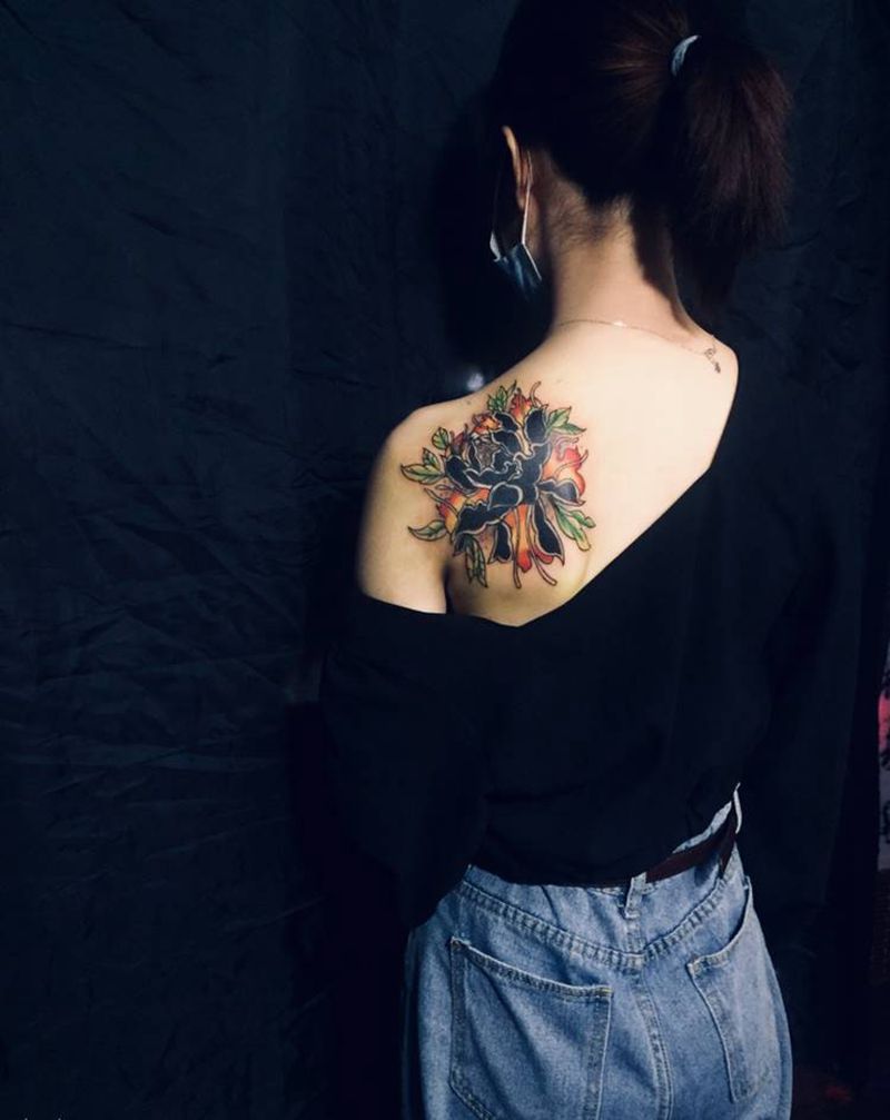 牡丹遮盖纹身图片_肩部背部纹身图案