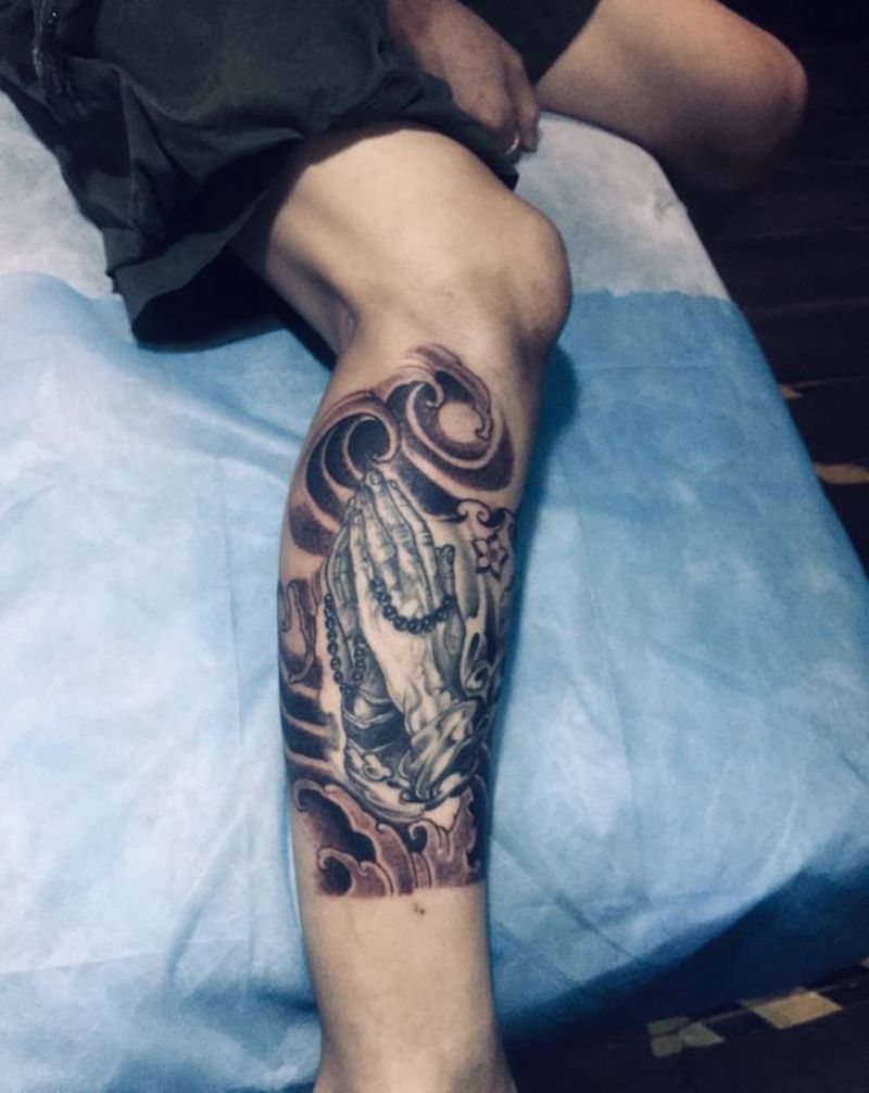 当前位置: 首页 >广东省佛山市纹身店-西樵鲤狮虎刺青纹身图案>小腿添加纹身图片_腿部纹身图案