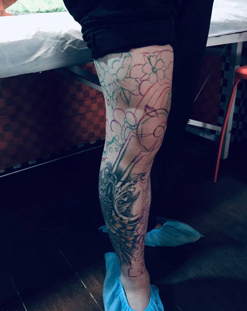 当前位置: 首页 >广东省佛山市纹身店-西樵鲤狮虎刺青纹身图案>手绘纹身图片_腿部纹身图案