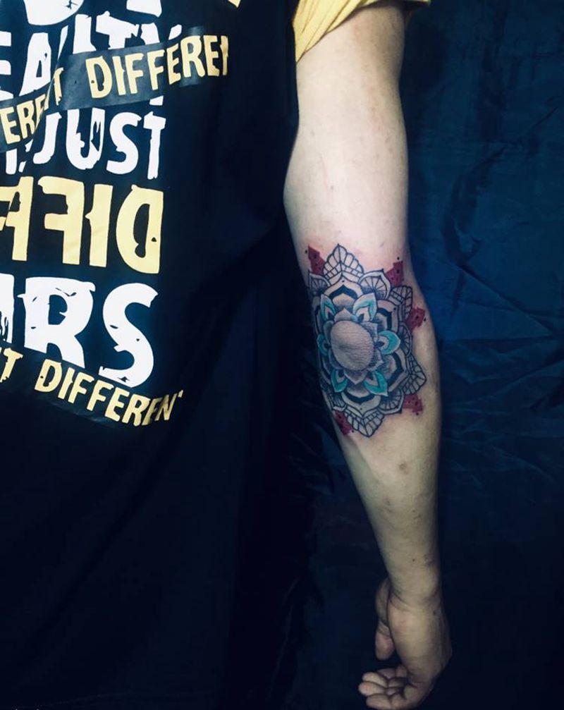 当前位置: 首页 >广东省佛山市纹身店-西樵鲤狮虎刺青纹身图案>曼陀罗纹身图片_手臂纹身图案