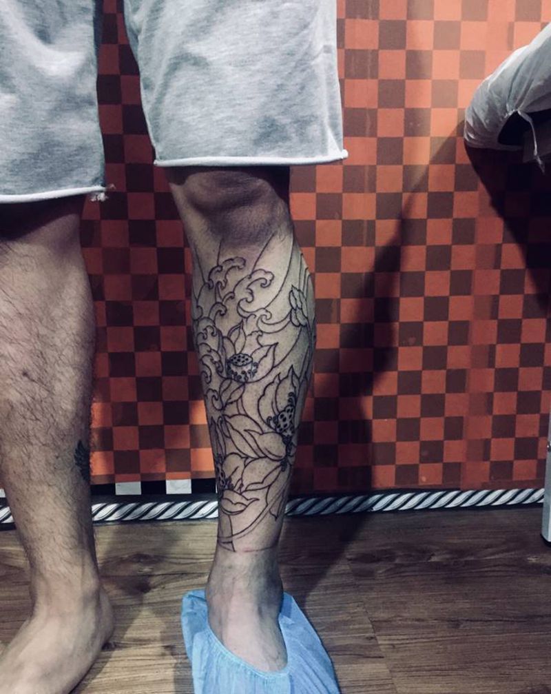 当前位置: 首页 >广东省佛山市纹身店-西樵鲤狮虎刺青纹身图案>小腿线条纹身图片_腿部纹身图案