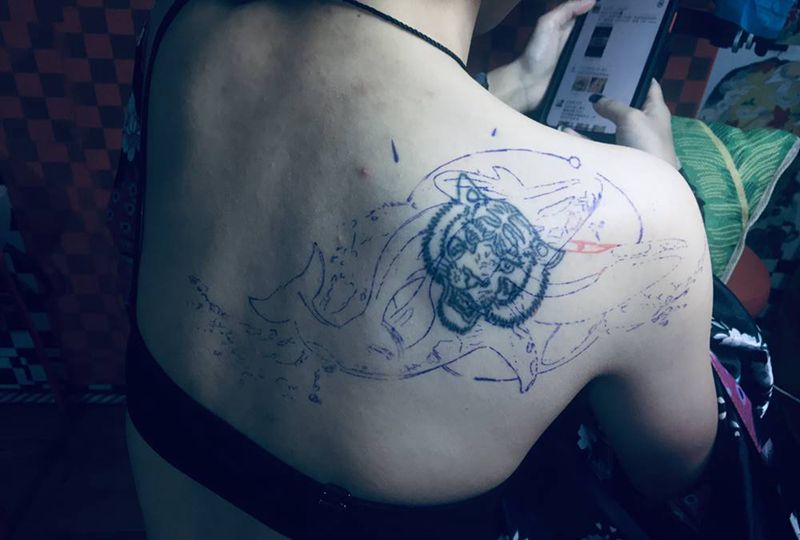 当前位置: 首页 >广东省佛山市纹身店-西樵鲤狮虎刺青纹身图案>遮盖虎头纹身图片_肩部背部纹身图案