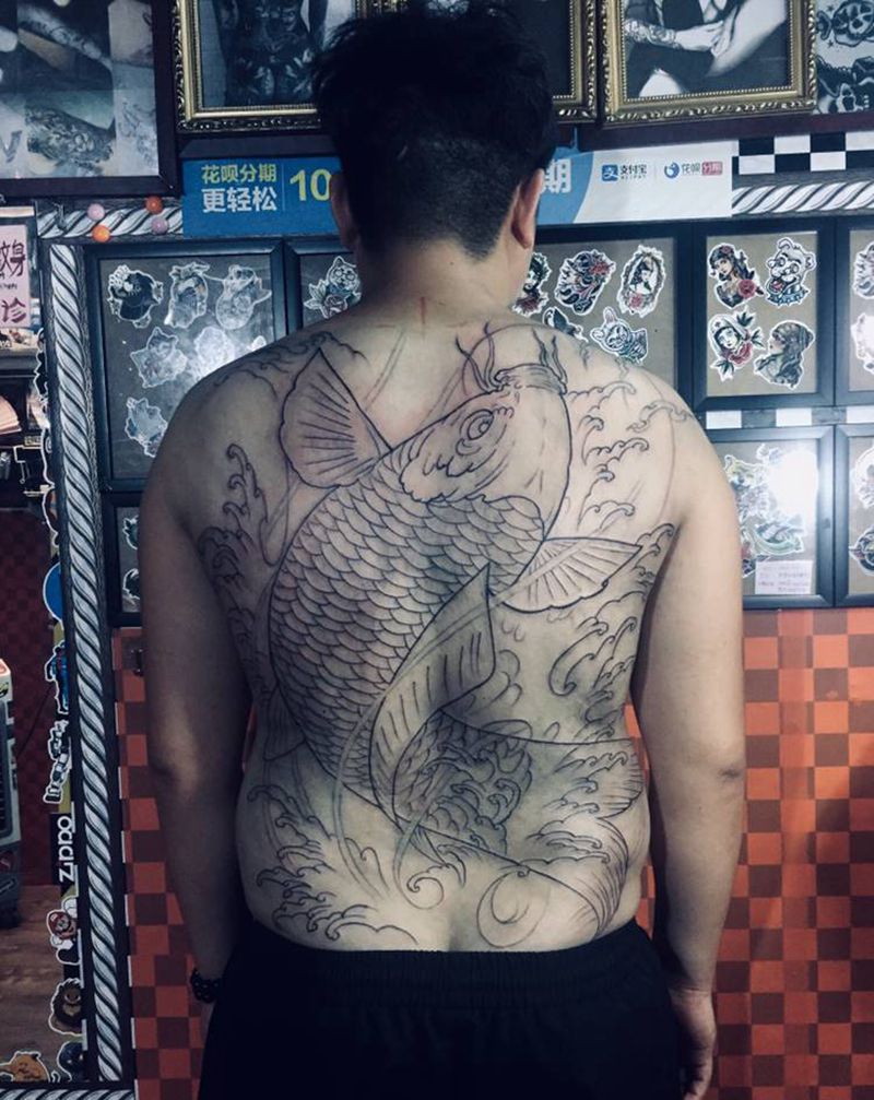 当前位置: 首页 >广东省佛山市纹身店-西樵鲤狮虎刺青纹身图案>鲤鱼线条纹身图片_背部纹身图案
