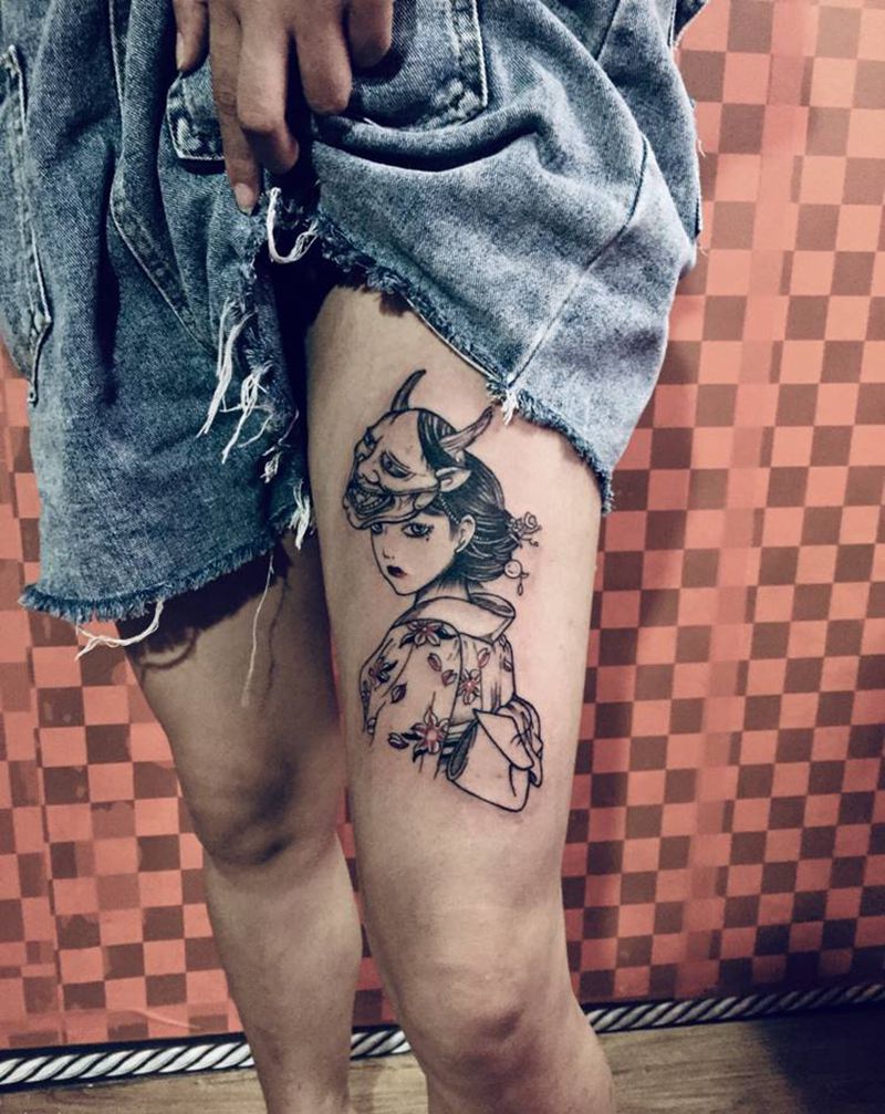 当前位置: 首页 >广东省佛山市纹身店-西樵鲤狮虎刺青纹身图案>艺妓纹身图片_腿部纹身图案