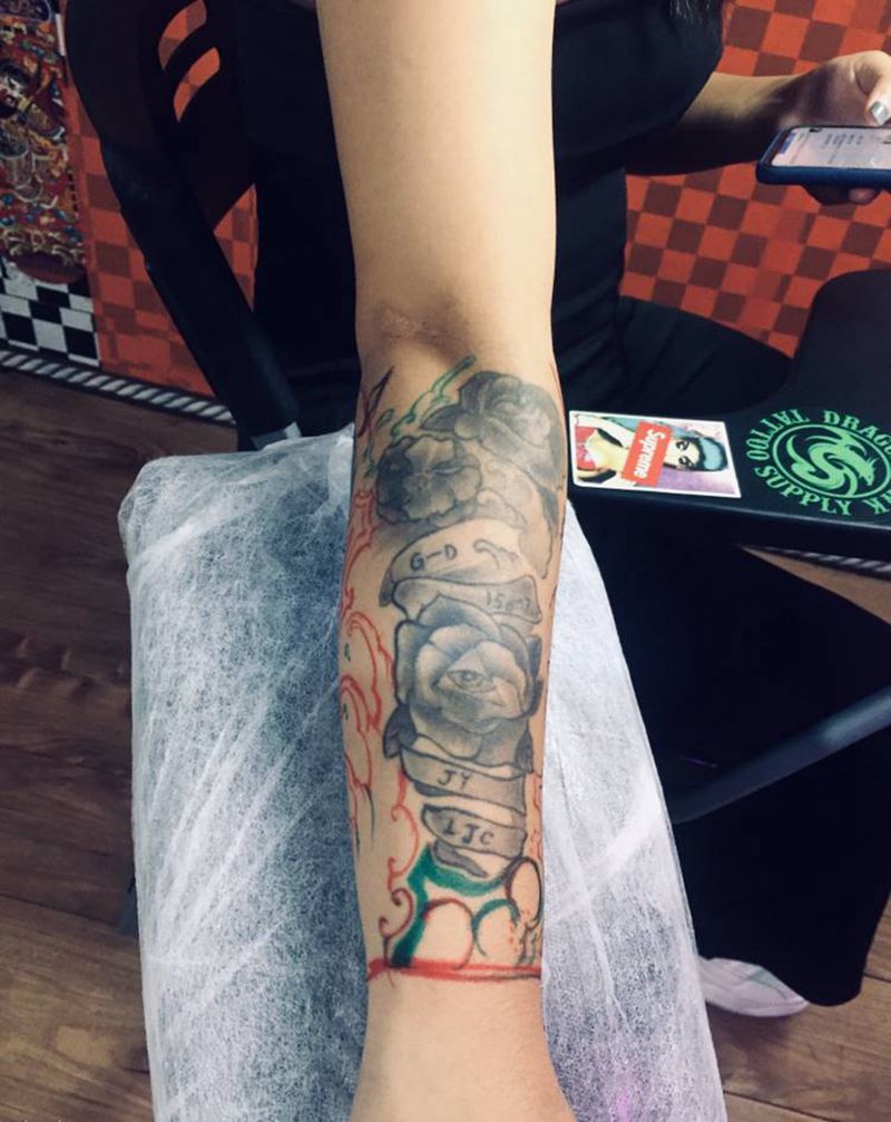 当前位置: 首页 >广东省佛山市纹身店-西樵鲤狮虎刺青纹身图案>老纹身添加纹身图片_手臂纹身图案