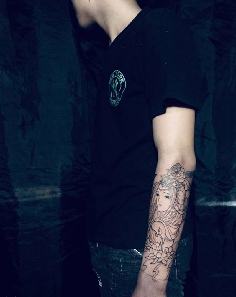 当前位置: 首页 >广东省佛山市纹身店-西樵鲤狮虎刺青纹身图案>艺妓线条纹身图片_手臂纹身图案