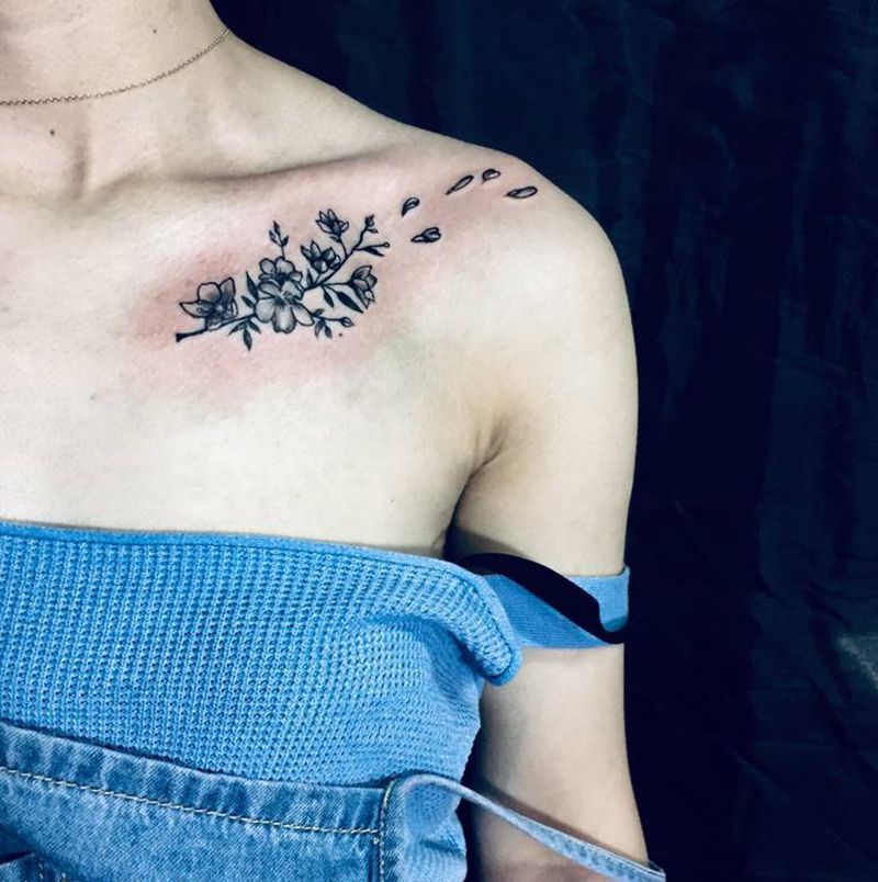 锁骨花纹身图片_肩部纹身图案