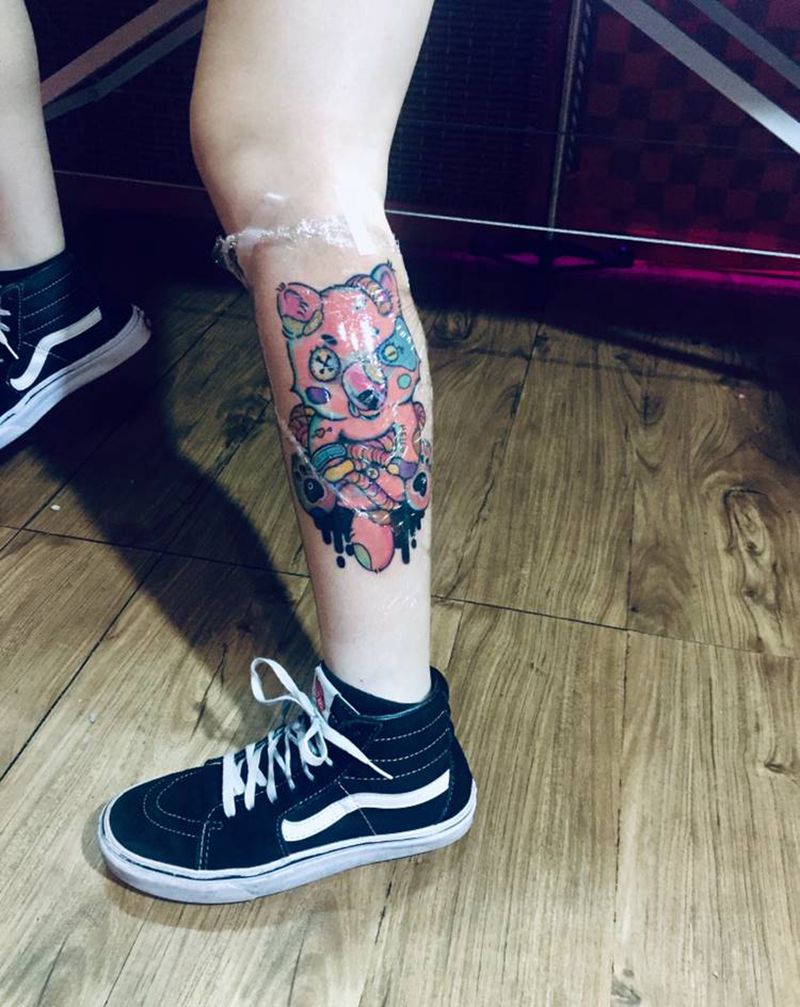 当前位置: 首页 >广东省佛山市纹身店-西樵鲤狮虎刺青纹身图案>熊纹身图片_腿部纹身图案