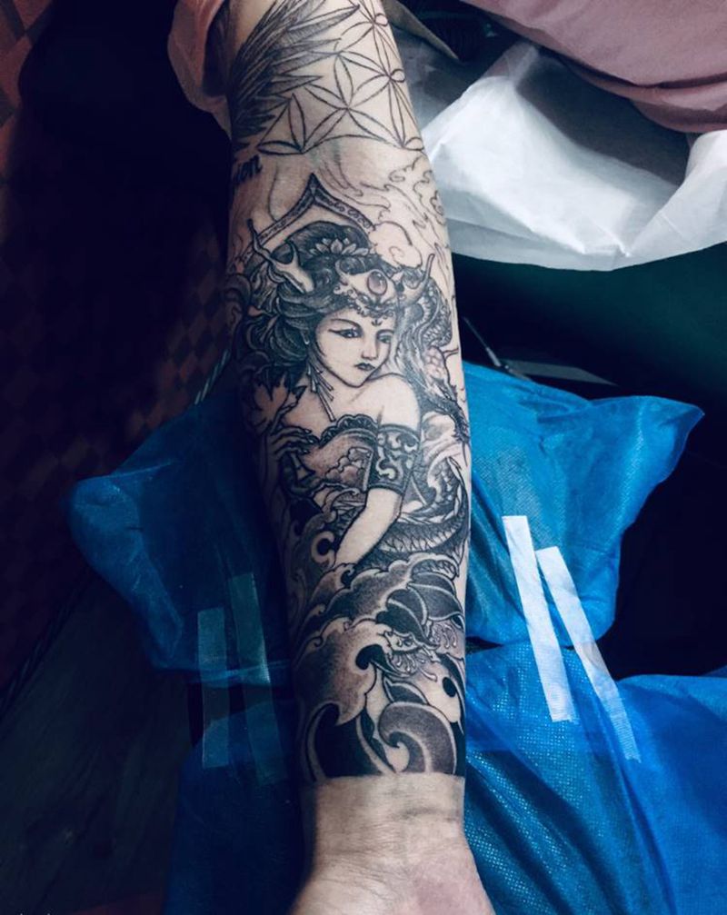 龙女未完成下次继续纹身图片_手臂纹身图案
