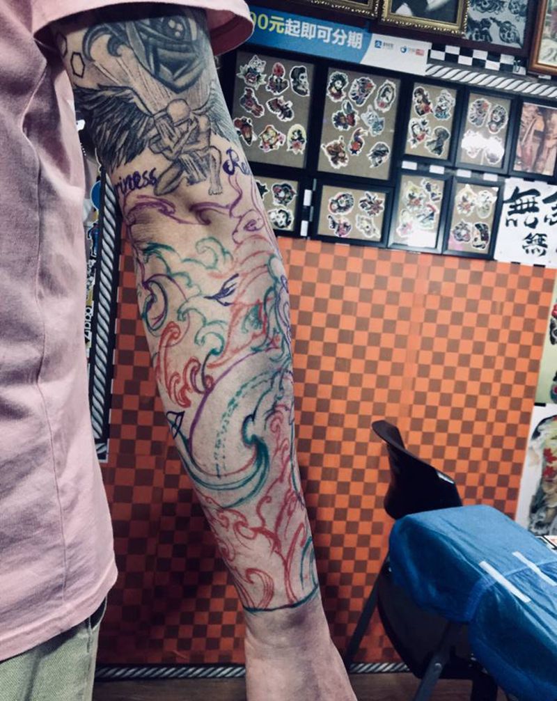 当前位置: 首页 >广东省佛山市纹身店-西樵鲤狮虎刺青纹身图案>手绘部分纹身图片_手臂纹身图案