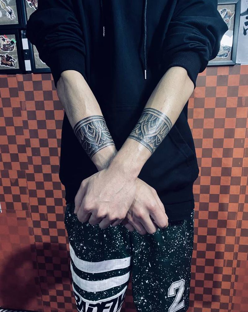 当前位置: 首页 >广东省佛山市纹身店-西樵鲤狮虎刺青纹身图案>双臂环纹身图片_手臂纹身图案