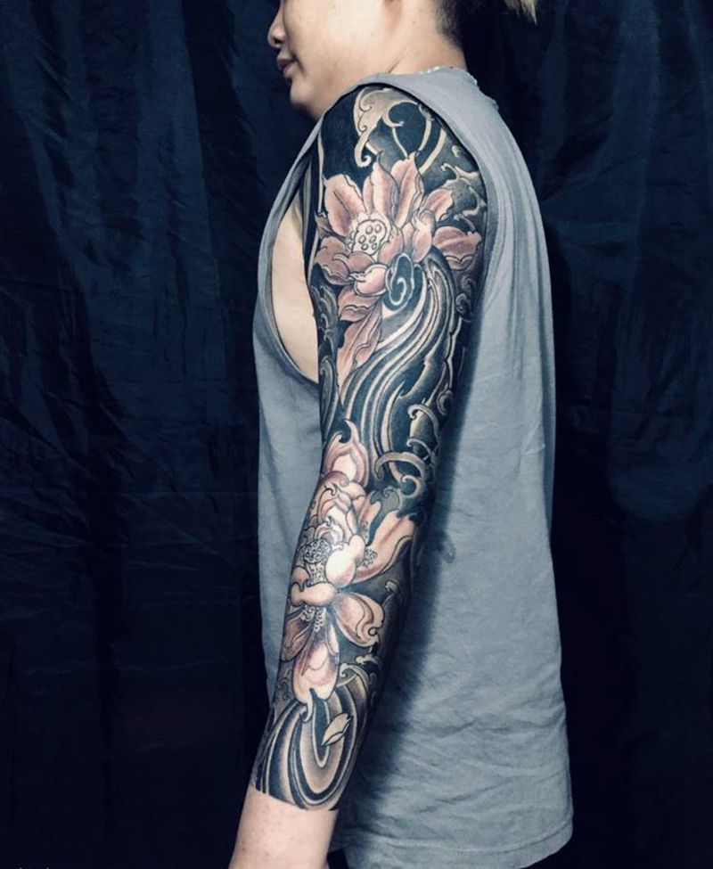一组15张莲花纹身手