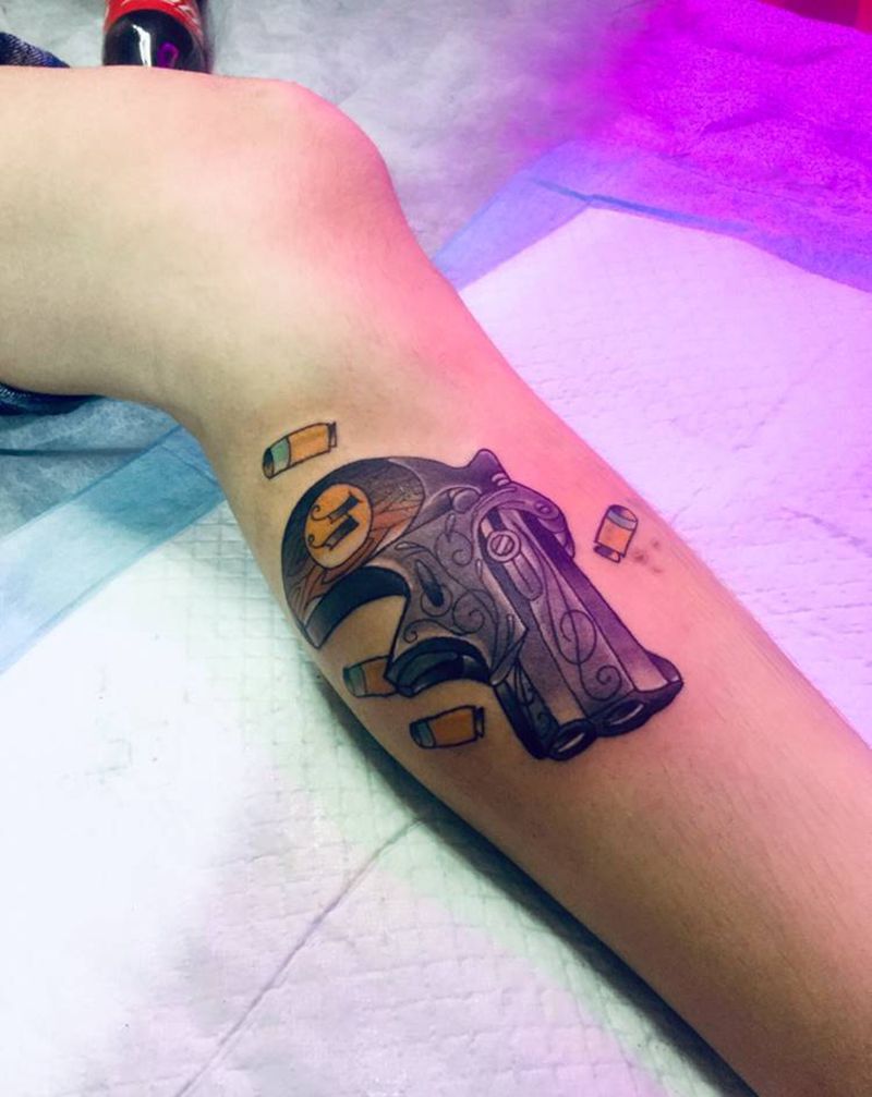 手枪纹身图片_腿部纹身图案