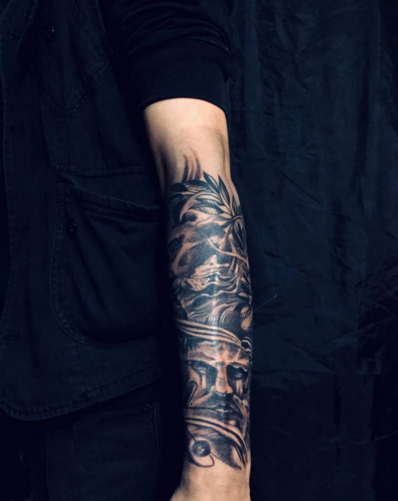 当前位置: 首页 >广东省佛山市纹身店-西樵鲤狮虎刺青纹身图案>波塞冬包小臂遮盖疤痕纹身图片_手臂纹身图案