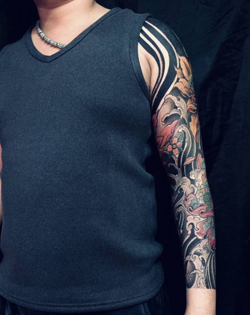 当前位置: 首页 >广东省佛山市纹身店-西樵鲤狮虎刺青纹身图案>花臂在结痂等待恢复纹身图片_手臂纹身图案