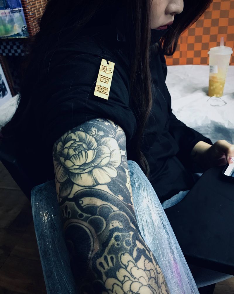 当前位置: 首页 >广东省佛山市纹身店-西樵鲤狮虎刺青纹身图案>美女花臂半胛纹身图片_手臂胸部纹身图案