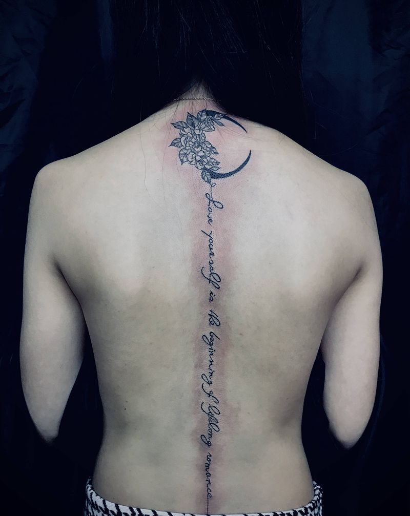 当前位置: 首页 >广东省佛山市纹身店-西樵鲤狮虎刺青纹身图案>美女脊椎纹身图片_背部纹身图案
