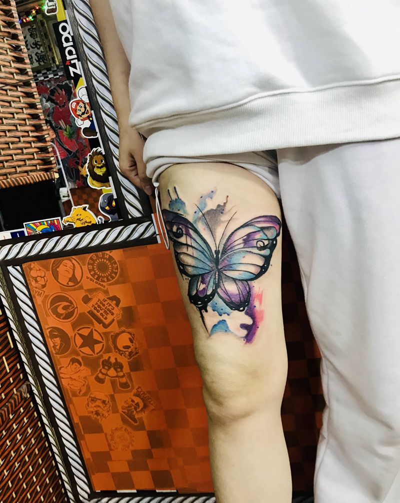 当前位置: 首页 >广东省佛山市纹身店-西樵鲤狮虎刺青纹身图案>蝴蝶修改纹身图片_腿部纹身图案