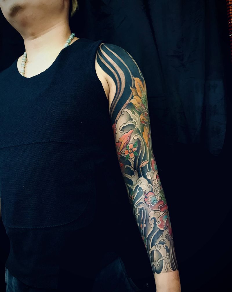 当前位置: 首页 >广东省佛山市纹身店-西樵鲤狮虎刺青纹身图案>莲花花臂完成纹身图片_手臂纹身图案