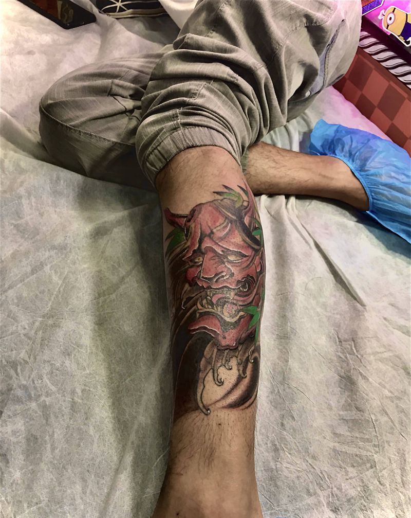 般若纹身图片_腿部纹身图案