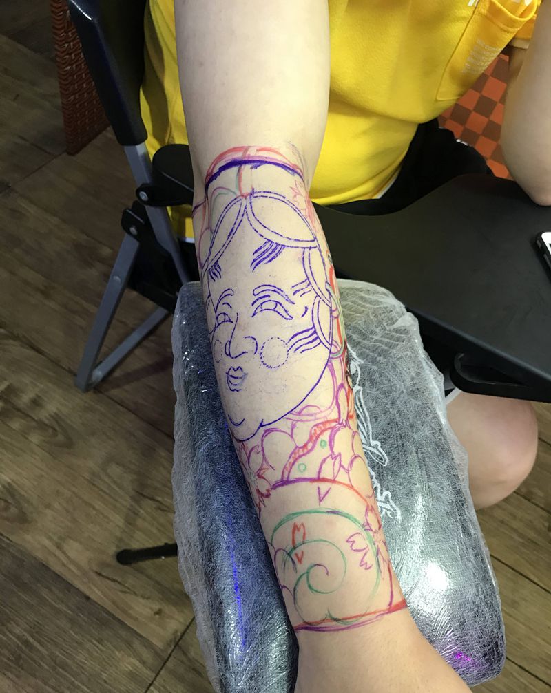 当前位置: 首页 >广东省佛山市纹身店-西樵鲤狮虎刺青纹身图案>日式小臂遮盖纹身图片_手臂纹身图案