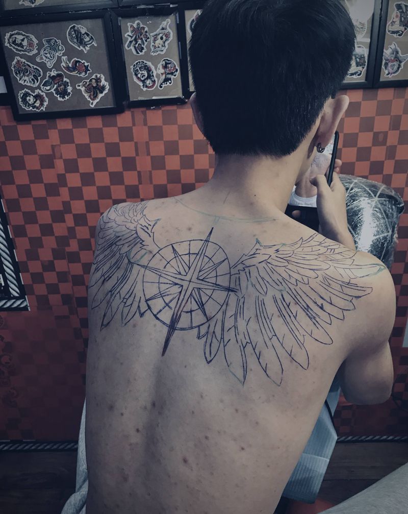 当前位置: 首页 >广东省佛山市纹身店-西樵鲤狮虎刺青纹身图案>翅膀线条纹身图片_背部纹身图案