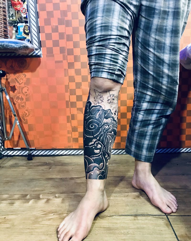 当前位置: 首页 >广东省佛山市纹身店-西樵鲤狮虎刺青纹身图案>日式包小腿遮盖纹身图片_腿部纹身图案