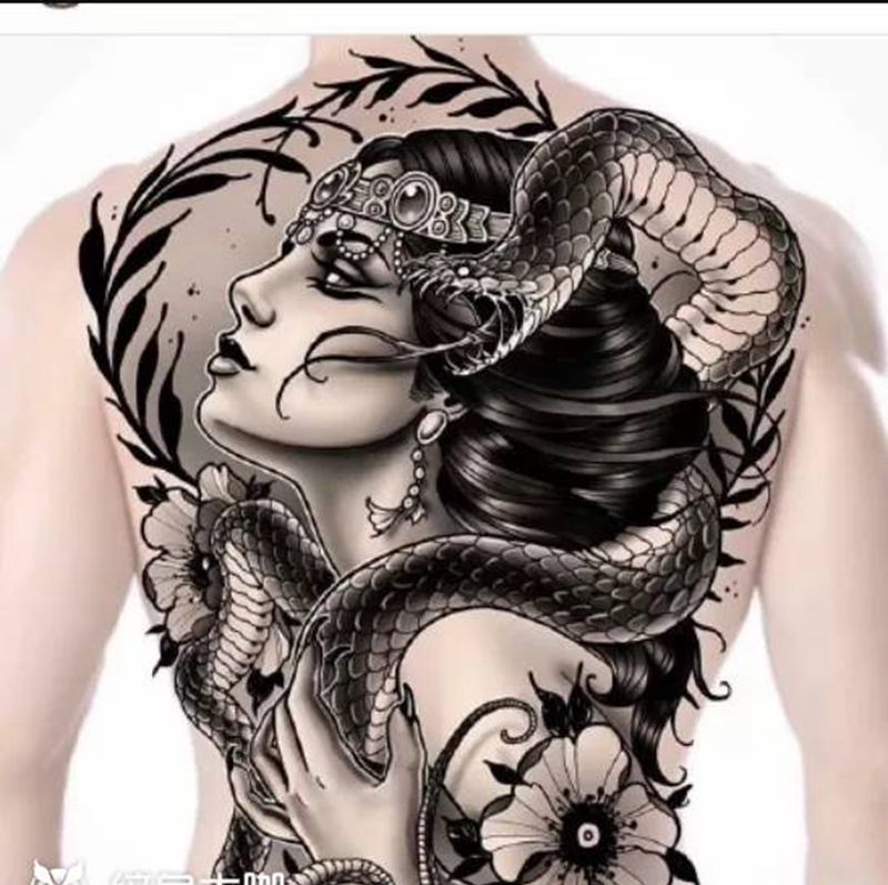 黑灰满背纹身图案