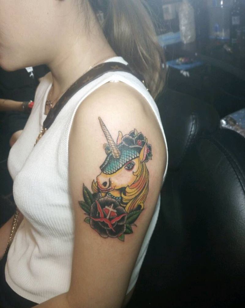 当前位置: 首页 >广东省佛山市纹身店-上将刺青工作室纹身图案>独角兽纹身图片_手臂欧美动物成品纹身图案