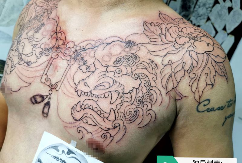 当前位置: 首页 >广东省佛山市纹身店-獨異刺青纹身图案>唐狮子胸花未完成作品纹身图片_胸部新传统纹身图案