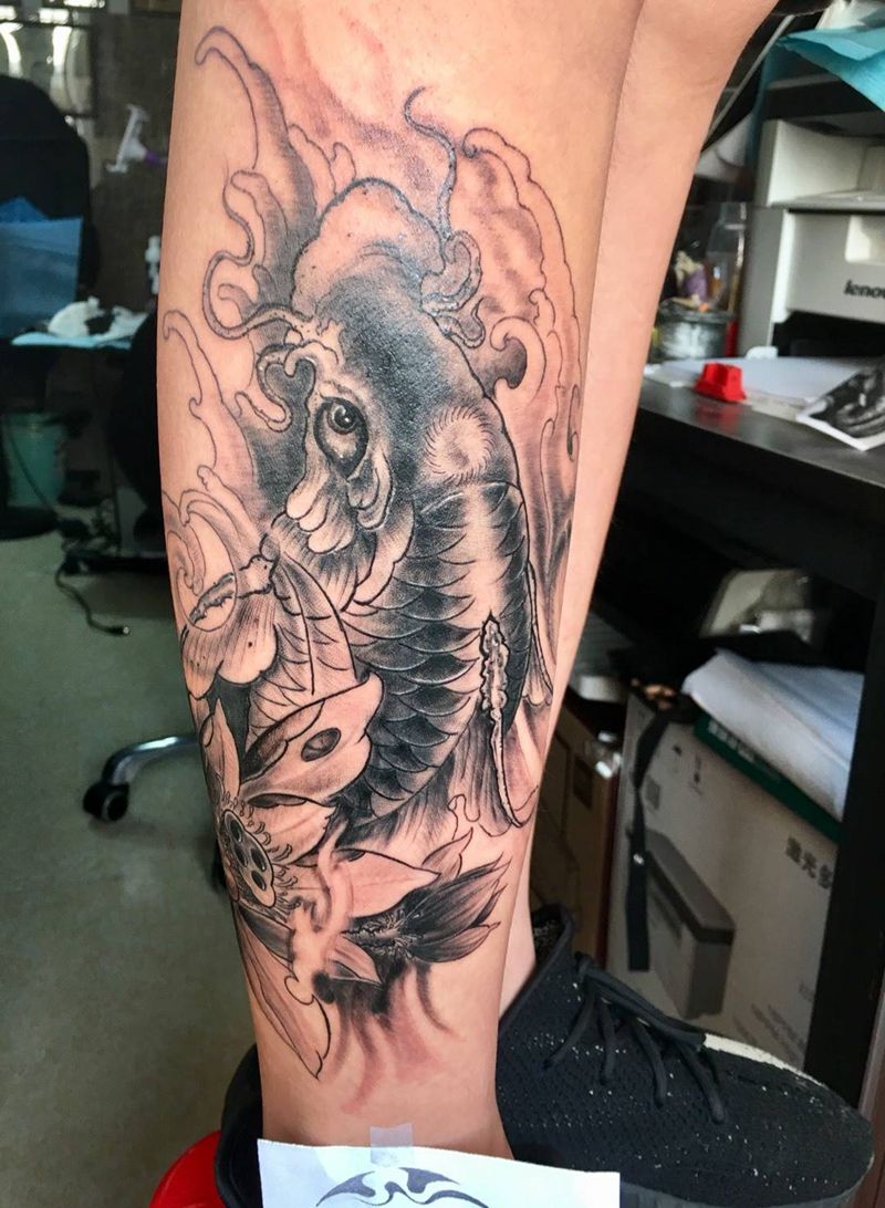 当前位置: 首页 >广东省佛山市纹身店-獨異刺青纹身图案>鲤鱼纹身图片_成品腿部传统植物动物纹身图案