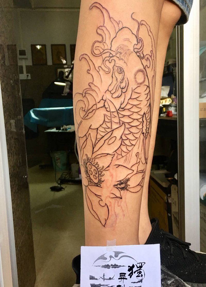 当前位置: 首页 >广东省佛山市纹身店-獨異刺青纹身图案>鲤鱼纹身图片_成品腿部传统植物动物纹身图案