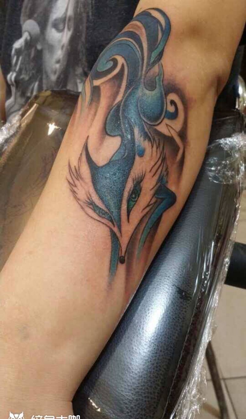 狐狸纹身图片_成品手臂手部清新传统动物纹身图案