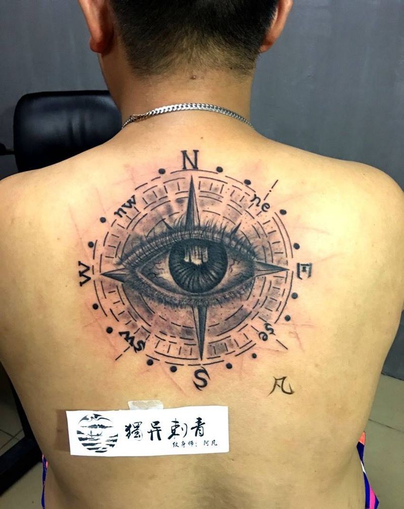 当前位置: 首页 >广东省佛山市纹身店-獨異刺青纹身图案>眼睛与指南针纹身图片_成品背部欧美几何图腾纹身图案