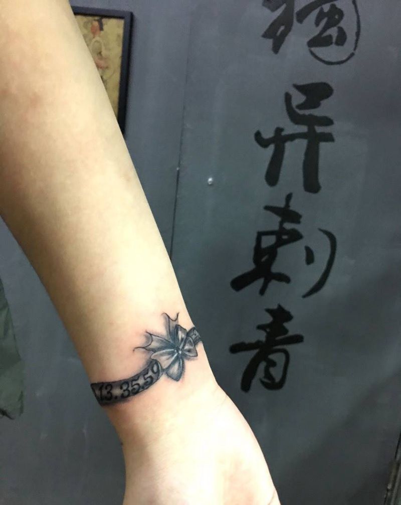 当前位置: 首页 >广东省佛山市纹身店-獨異刺青纹身图案>蝴蝶结 彩带 数字纹身图片