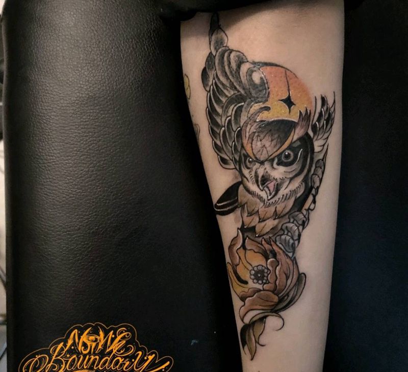 当前位置: 首页 >广东省佛山市纹身店-NewBoundary新界刺青纹身图案>猫头鹰纹身图片_手臂New School纹身图案