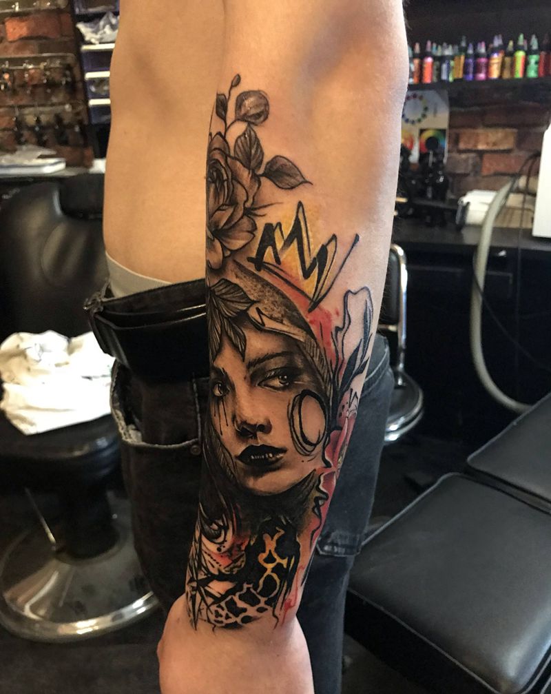 当前位置: 首页 >广东省佛山市纹身店-刺修者纹身店纹身图案>人物纹身图片_手臂欧美写实纹身图案