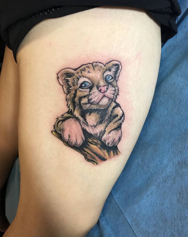 小老虎纹身图片_腿部New School欧美写实纹身图案