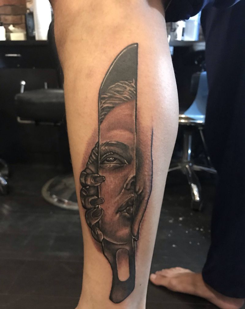 当前位置: 首页 >广东省佛山市纹身店-刺修者纹身店纹身图案>匕首纹身图片_腿部欧美写实纹身图案