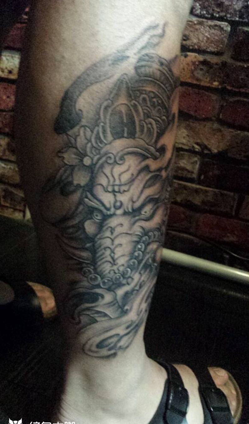 • T网红王老大花腿龙纹身图片_腿部新传统纹身图案