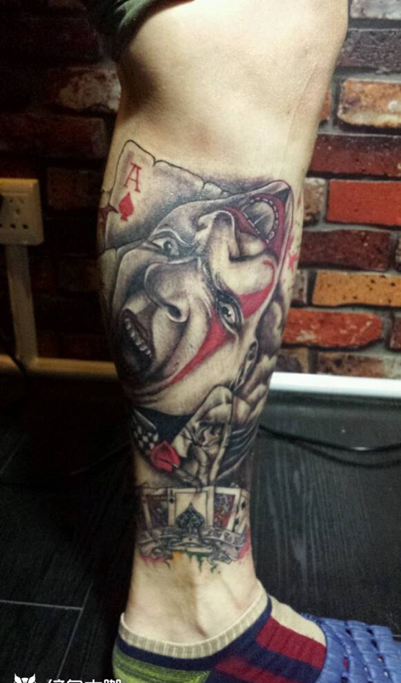 • T包小腿吹火男+阿多福纹身图片_腿部老传统新传统吹火男阿
