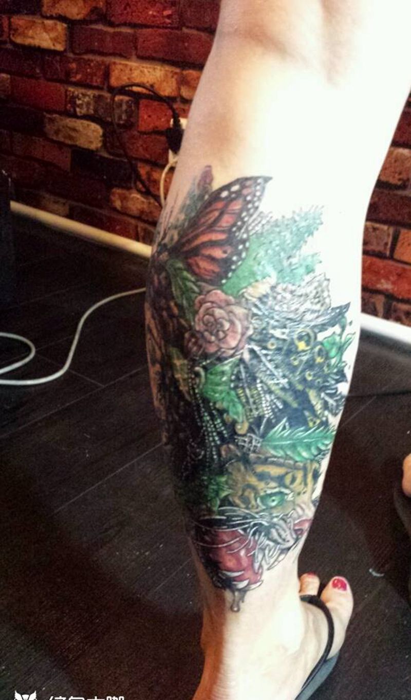 • T网红王老大花腿龙纹身图片_腿部新传统纹身图案