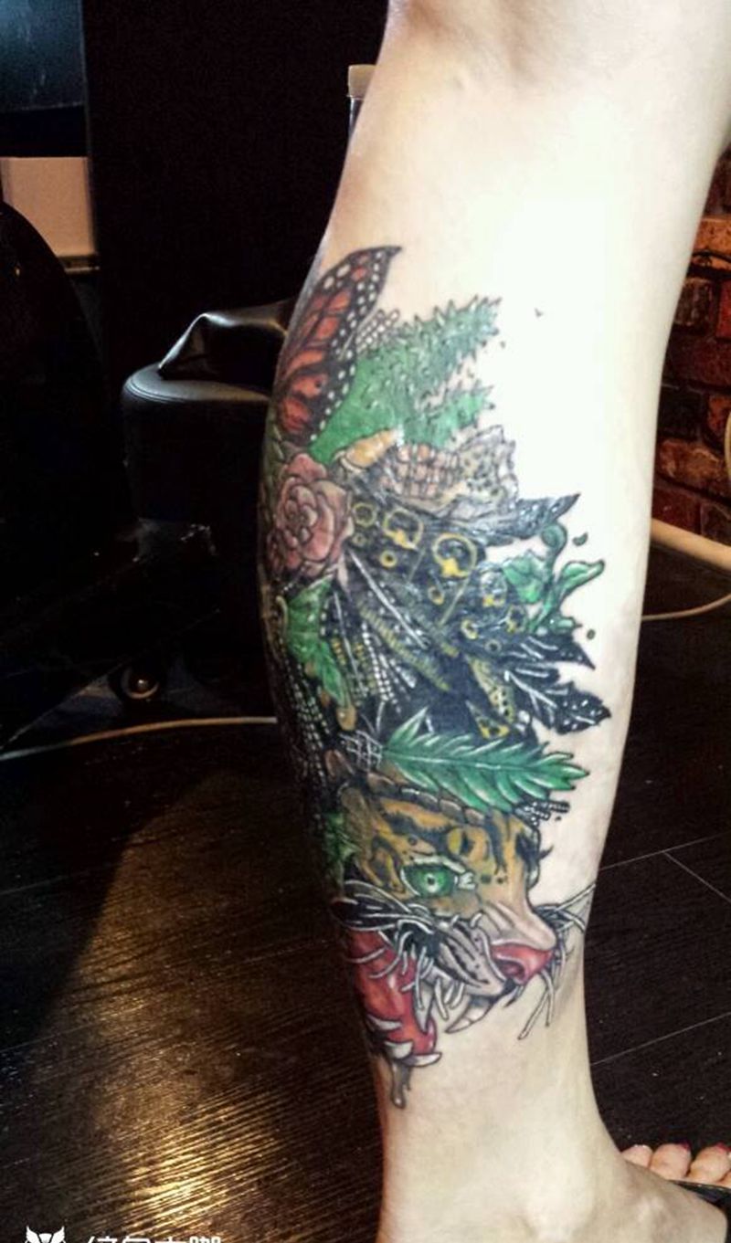 • T网红王老大花腿龙纹身图片_腿部新传统纹身图案